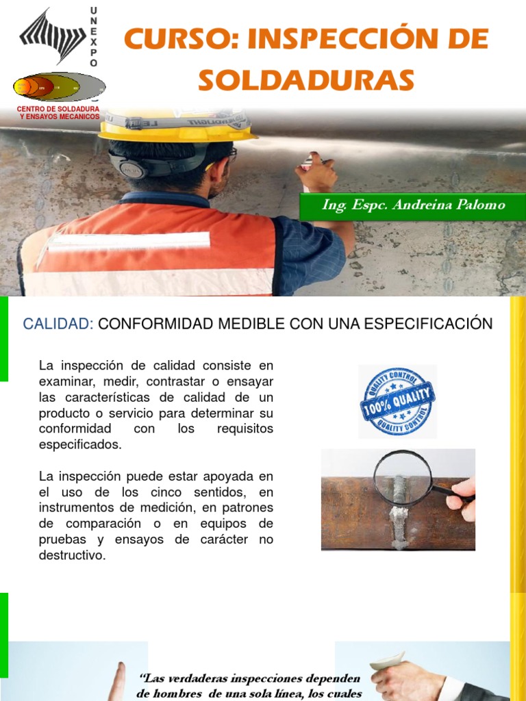 “La función del inspector de soldadura, es juzgar la calidad de un producto soldado en relación a