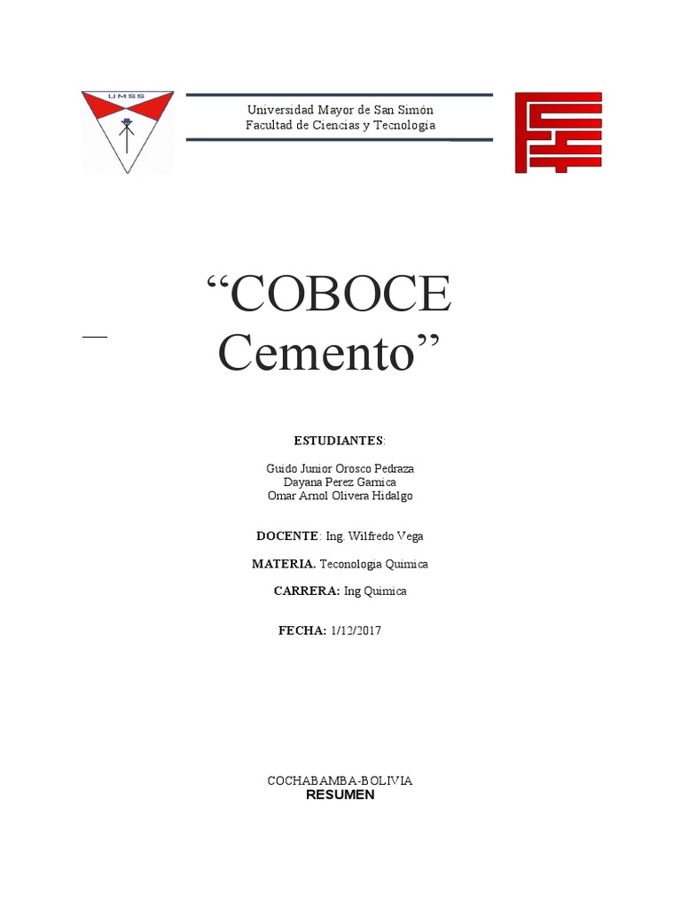 justificación, las actividades y una breve reseña histórica del cemento y de coboce.