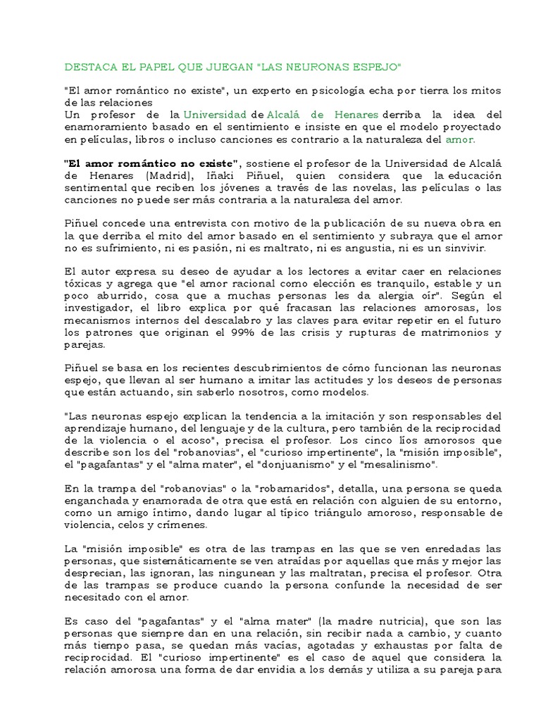 DESTACA EL PAPEL QUE JUEGAN "LAS NEURONAS ESPEJO"