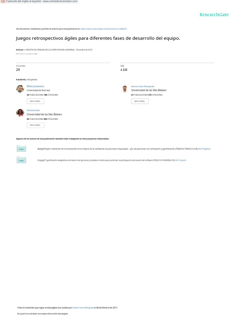 Palabras clave: Desarrollo de software ágil, retrospectiva ágil, juegos, mejora de procesos