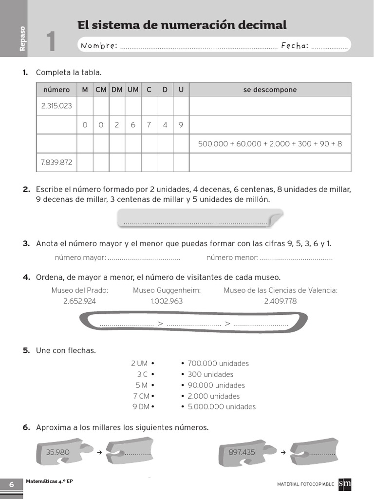 3. Anota el número mayor y el menor que puedas formar con las cifras 9, 5, 3, 6 y 1.