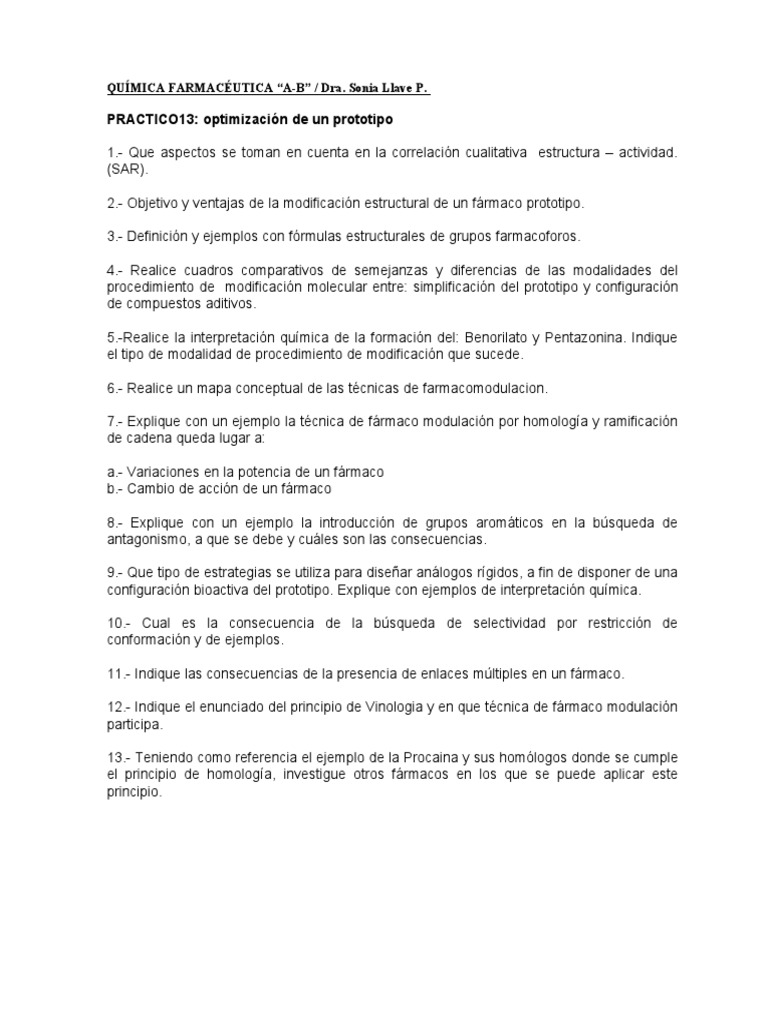QUÍMICA FARMACÉUTICA “A-B” / Dra. Sonia Llave P.