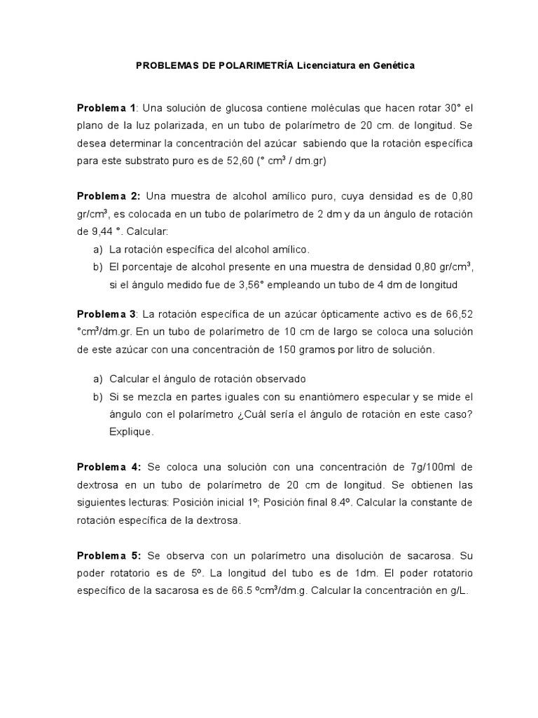 PROBLEMAS DE POLARIMETRÍA Licenciatura en Genética