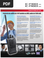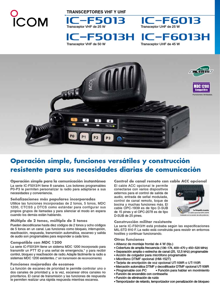 La serie IC-F5013/H tiene un sistema MDC 1200 incorporado para • Cobertura de amplia frecuencia (136–174, 400–470 y 450–520 MHz)