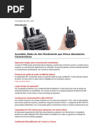 de 5 tonos en un canal. Las funciones como bloqueo, interrupción, MIL-STD 810 F. La radio está construida para resistir en entornos