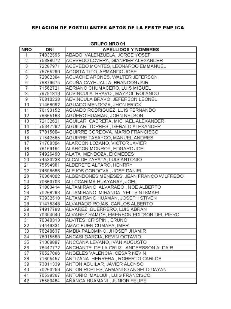 RELACION DE POSTULANTES APTOS DE LA EESTP PNP ICA