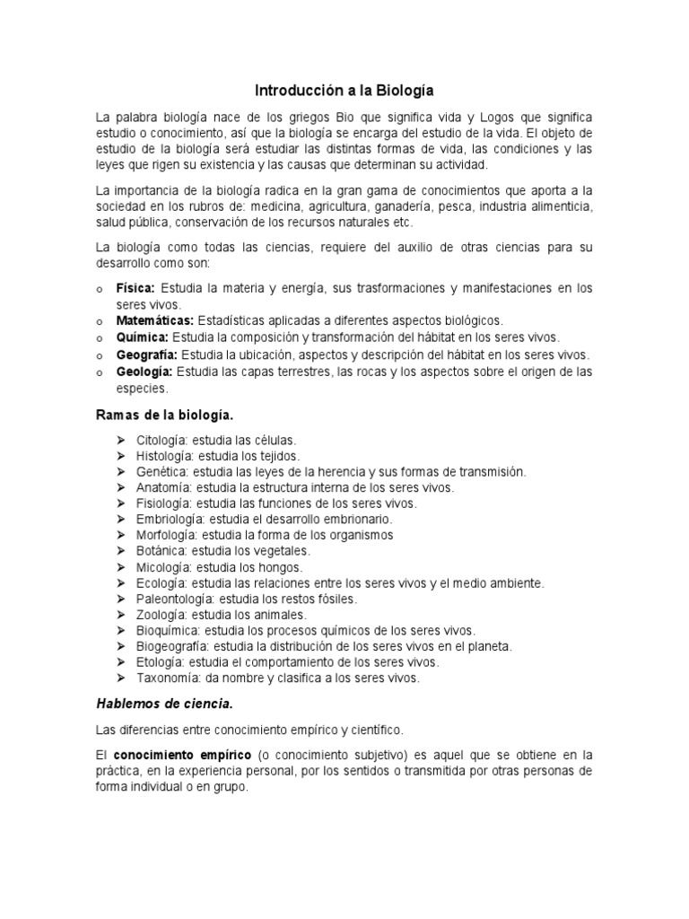 estudio o conocimiento, así que la biología se encarga del estudio de la vida. El objeto de