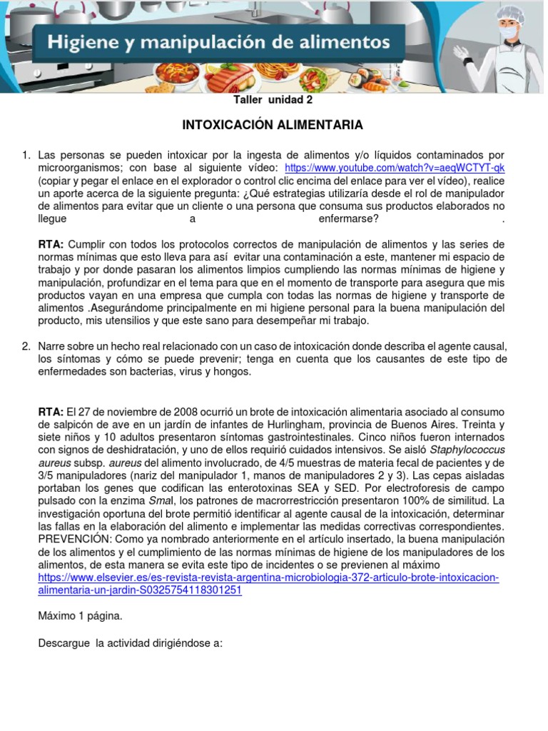 Espacio: Taller unidad 2: Intoxicación alimentaria