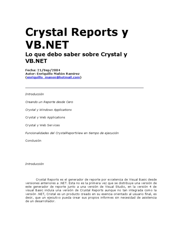 Crystal Reports es el generador de reporte por excelencia de Visual Basic desde
