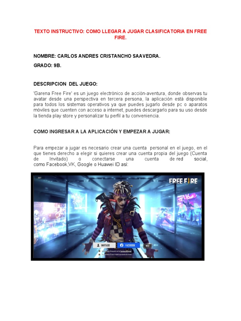 TEXTO INSTRUCTIVO: COMO LLEGAR A JUGAR CLASIFICATORIA EN FREE