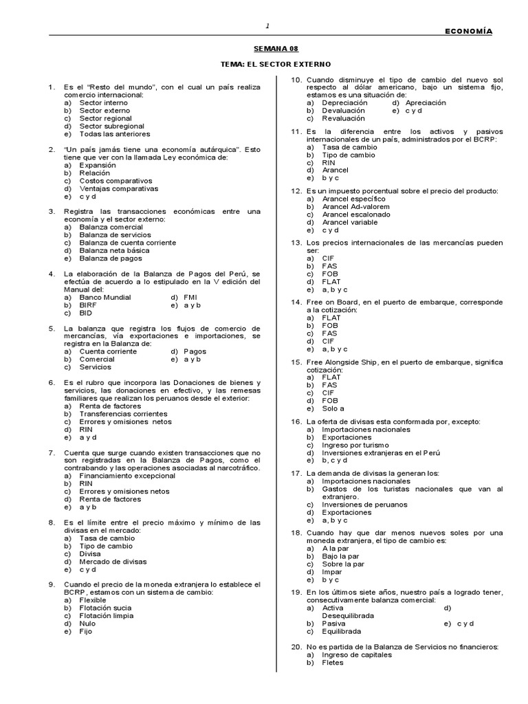 d) Balanza de pagos d) Endeudarse en nuevos soles