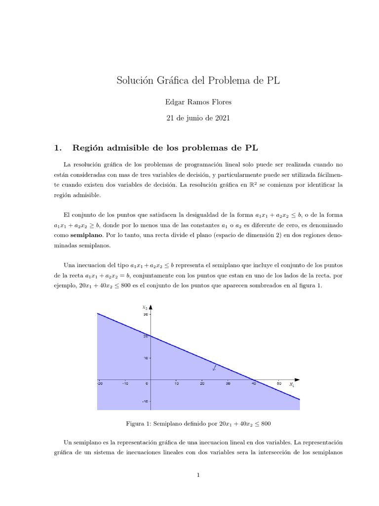 ejemplo, 20x1 + 40x2 ≤ 800 es el conjunto de los puntos que aparecen sombreados en al figura 1.
