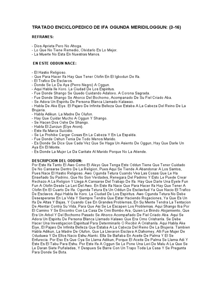 TRATADO ENCICLOPEDICO DE IFA OGUNDA MERIDILOGGUN: (3-16)