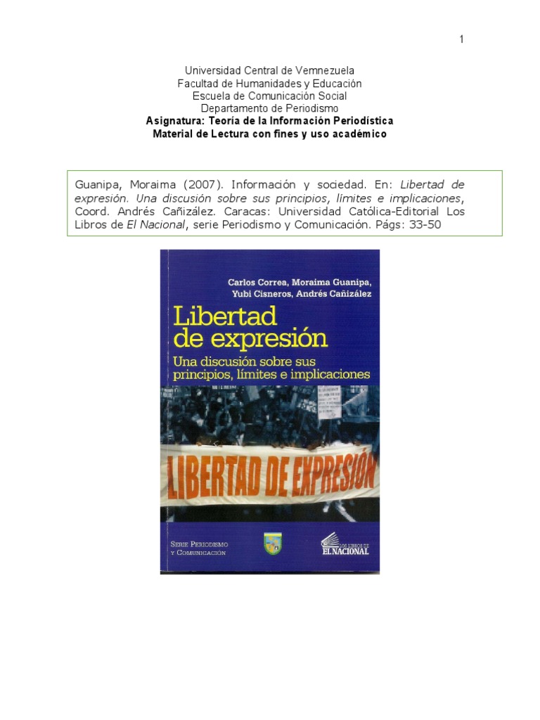 Guanipa, Moraima (2007). Información y sociedad. En: Libertad de
