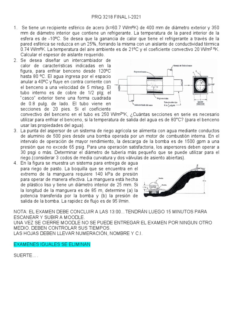 1. Se tiene un recipiente esférico de acero (k=60.7 W/mºK) de 400 mm de diámetro exterior y 350