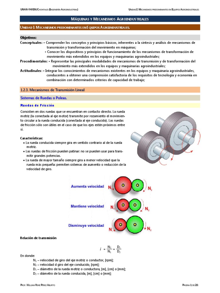 UNIDAD I: MECANISMOS PREDOMINANTES EN EQUIPOS AGROINDUSTRIALES.