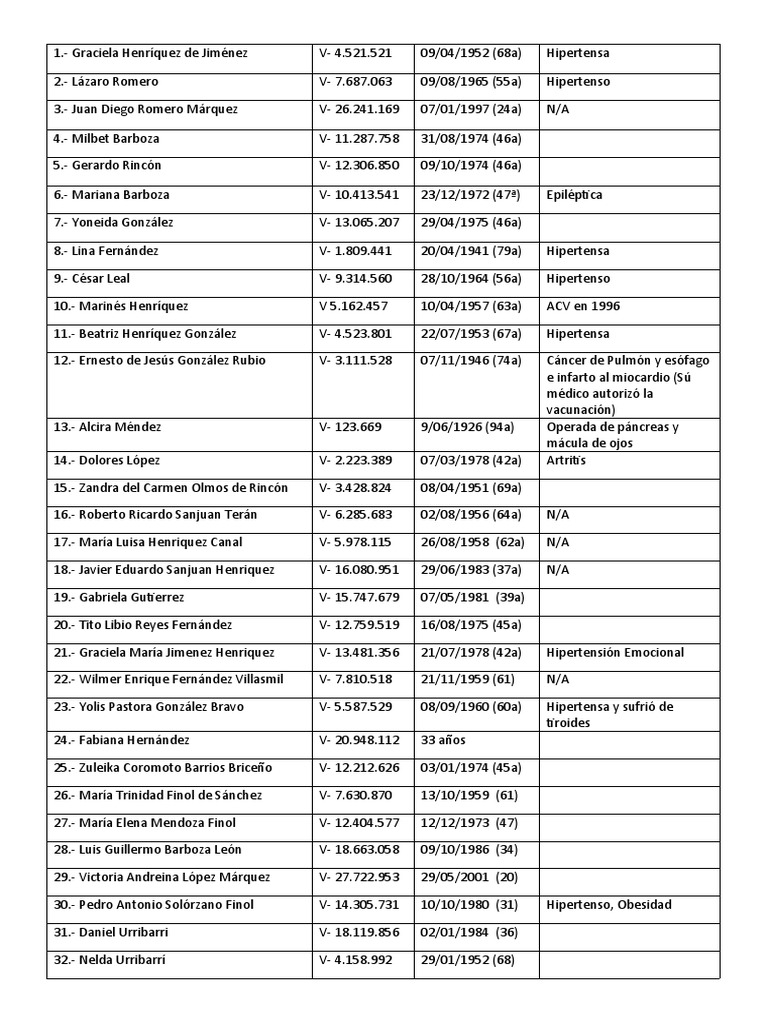 18.- Edda Enrique Morillo González V- 4.994.472 08/07/1956 (64) Hipertenso, diabético