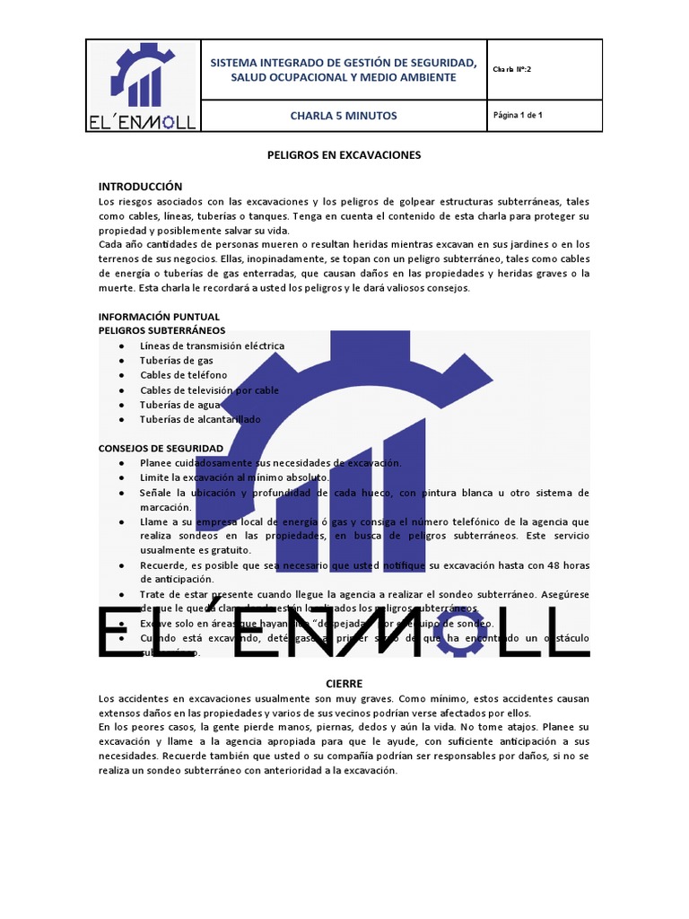 como cables, líneas, tuberías o tanques. Tenga en cuenta el contenido de esta charla para proteger su