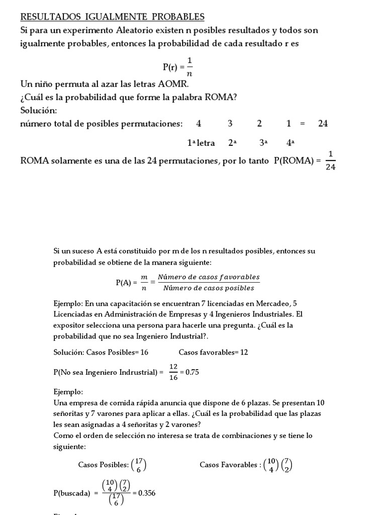 Si para un experimento Aleatorio existen n posibles resultados y todos son
