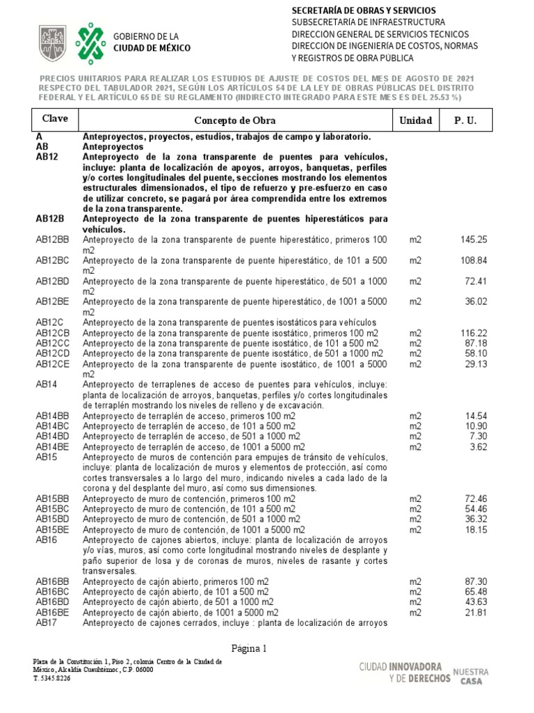 RESPECTO DEL TABULADOR 2021, SEGÚN LOS ARTÍCULOS 54 DE LA LEY DE OBRAS PÚBLICAS DEL DISTRITO