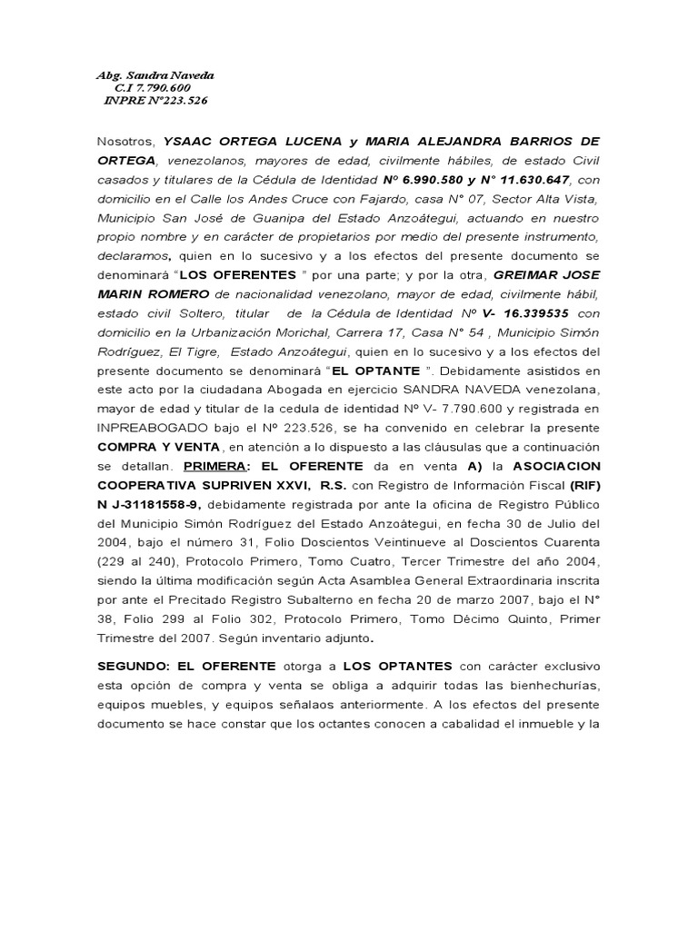 presente documento se denominará “EL OPTANTE ”. Debidamente asistidos en