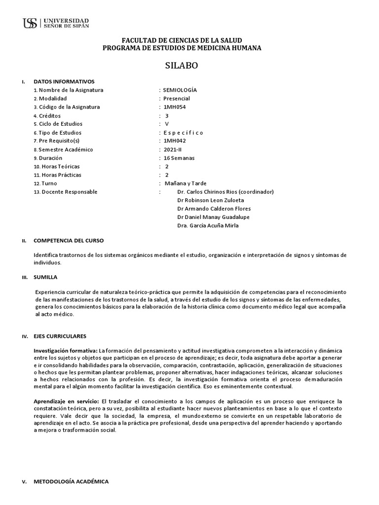 1. Nombre de la Asignatura : SEMIOLOGÍA