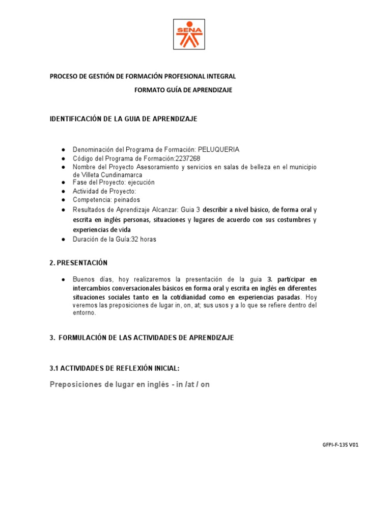 ● Resultados de Aprendizaje Alcanzar: Guia 3 describir a nivel básico, de forma oral y