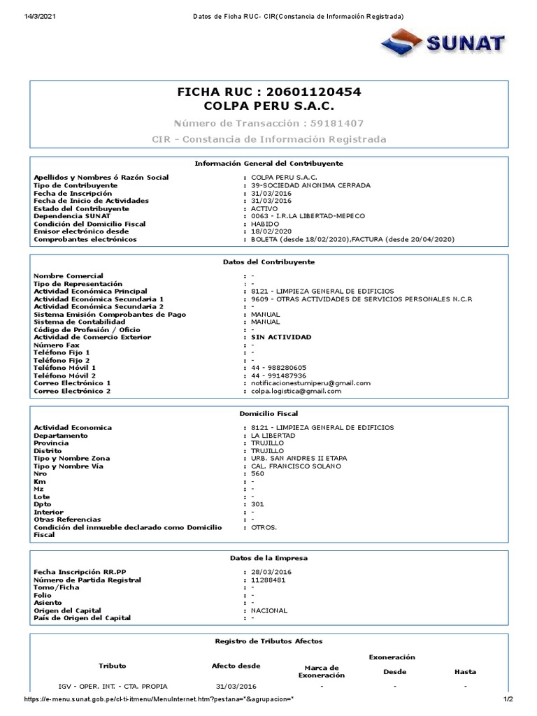 14/3/2021 Datos de Ficha RUC- CIR(Constancia de Información Registrada)