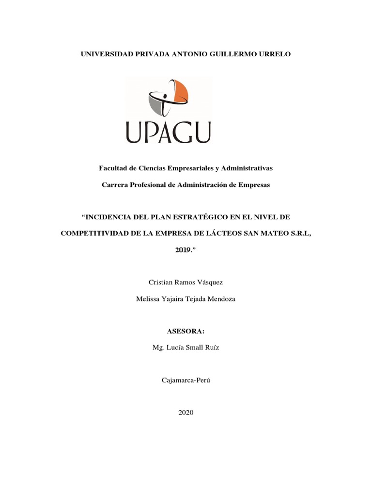 Tejada, G., & Ugaz, C. (2016). Propuesta de un plan estratégico para mejorarla