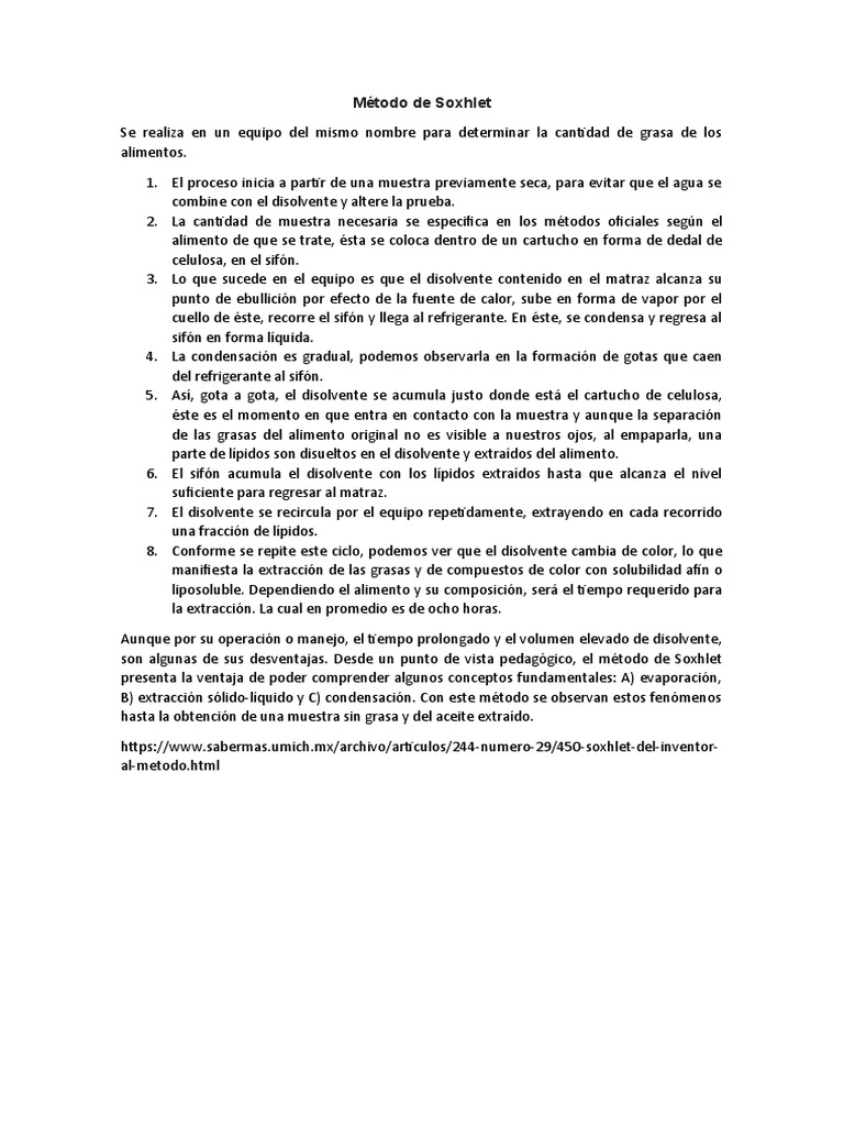 son algunas de sus desventajas. Desde un punto de vista pedagógico, el método de Soxhlet