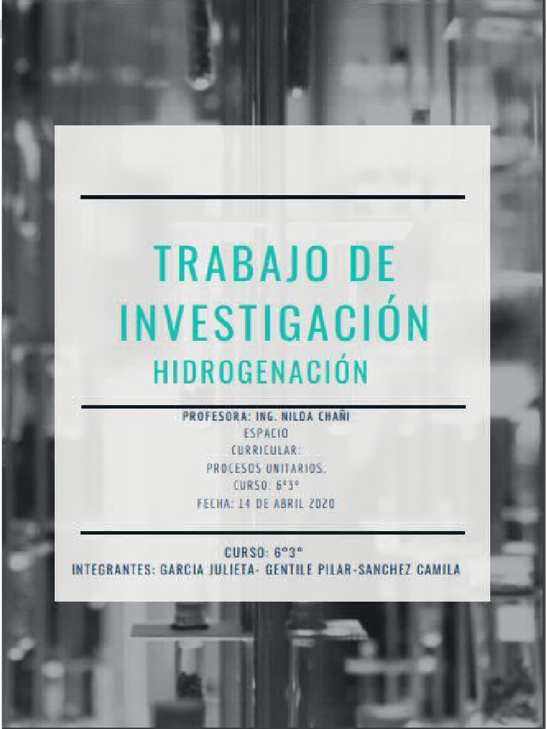 Equipamiento para el proceso unitario de hidrogenación