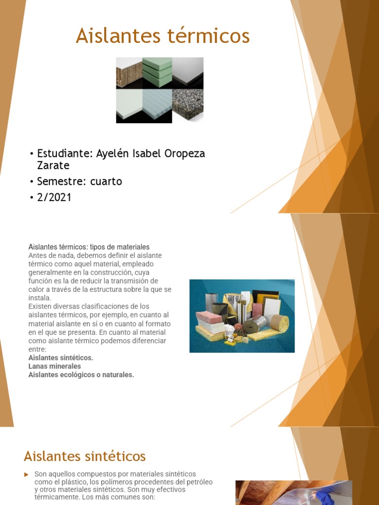 propiedades como aislante es reciclable y renovable. Se presenta en diferentes