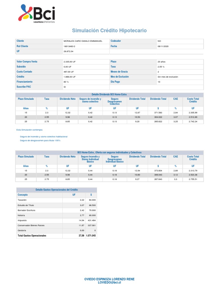 Valor Compra Venta 2.335,00 UF Plazo 20 años