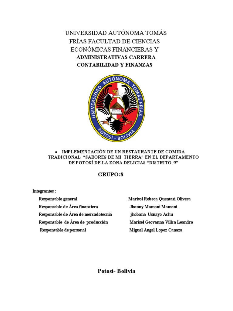 El presente proyecto tiene por objeto crear un restaurant de comidas típicas en el