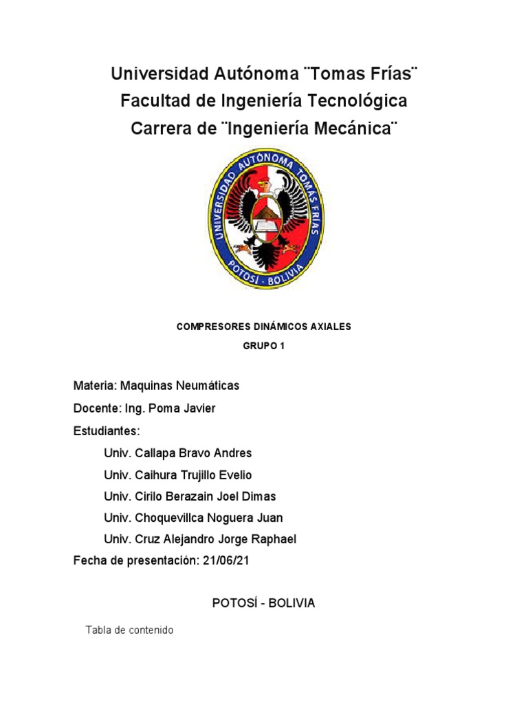 de un compresor axial va disminuyendo de área de su sección transversal, en la