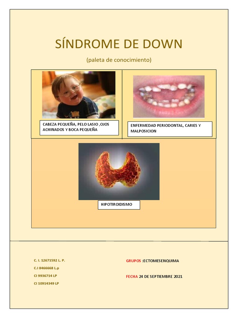 En el síndrome de Down podemos observar que el paciente presenta, retardo al momento del aprendizaje, talla baja,
