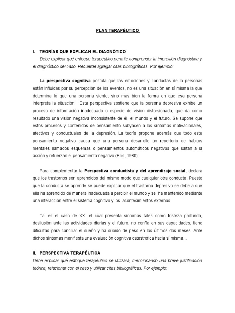 Debe explicar qué enfoque terapéutico se utilizará, mencionando una breve justificación