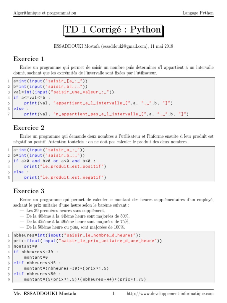 TD 1 Corrigé : Python