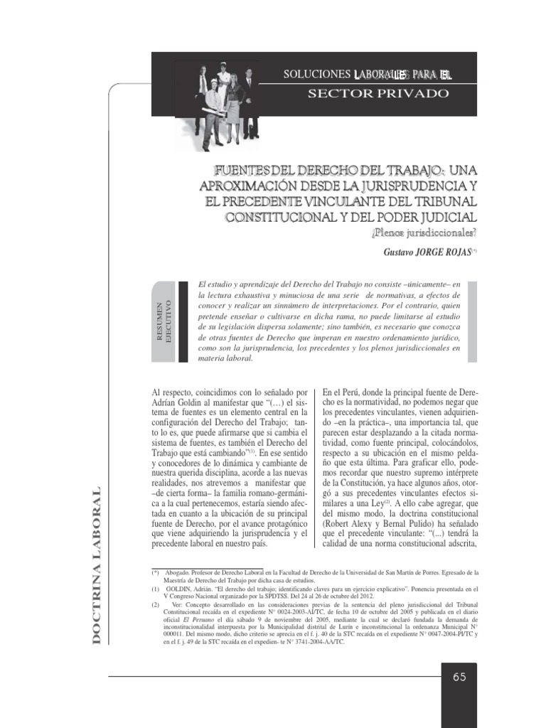 dad y al precedente en una misma la doctrina. Asimismo, respecto a la to de fuentes de Derecho del Traba-
