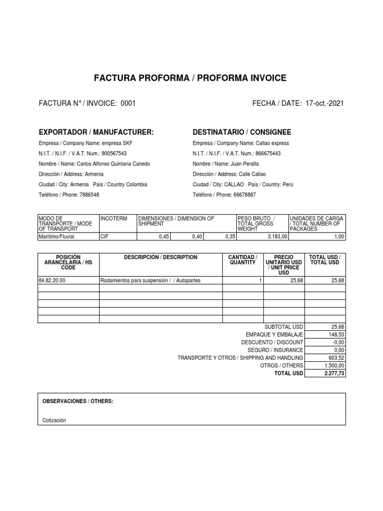 FACTURA PROFORMA / PROFORMA INVOICE