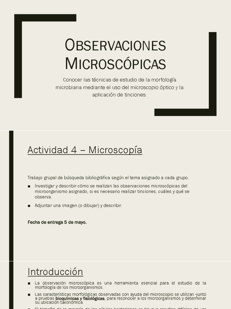 ■ Investigar y describir cómo se realizan las observaciones microscópicas del