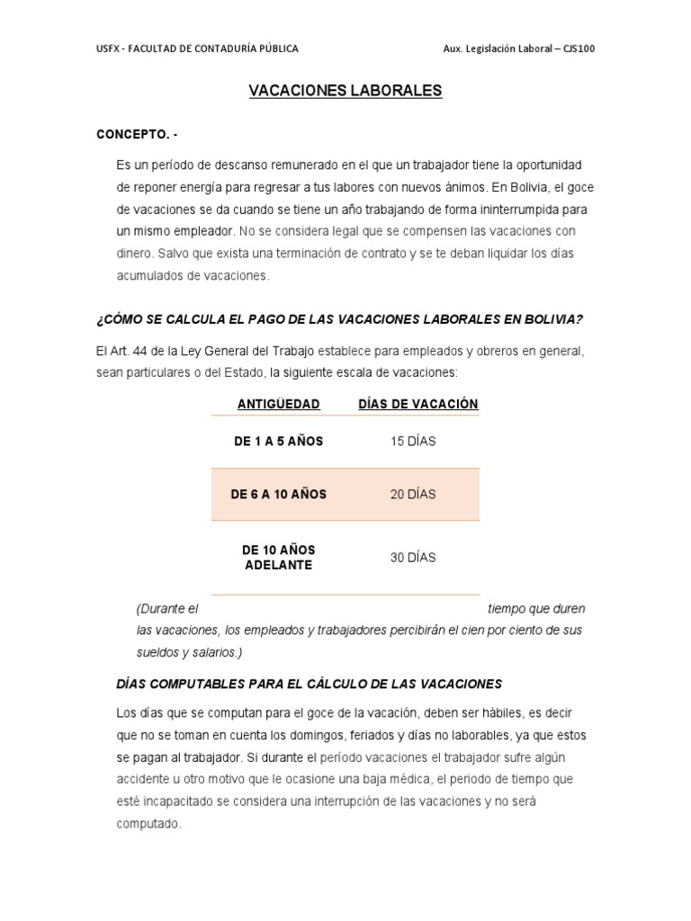 ¿CÓMO SE CALCULA EL PAGO DE LAS VACACIONES LABORALES EN BOLIVIA?