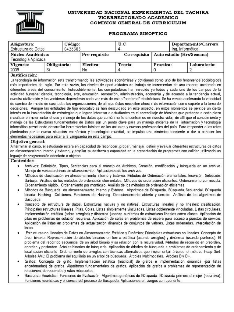 o Estructura de Datos, Algoritmos y Programación Orientada a Objetos.