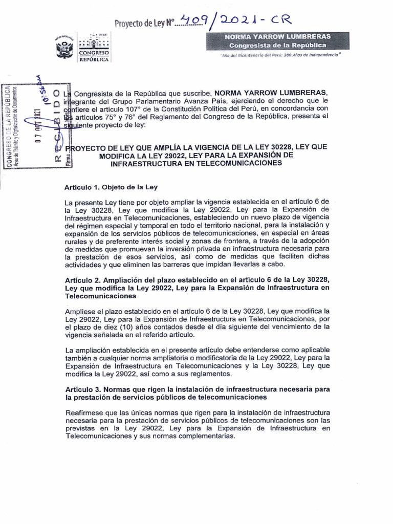' O L Congresista de la República que suscribe, NORMA YARROW LUMBRERAS,