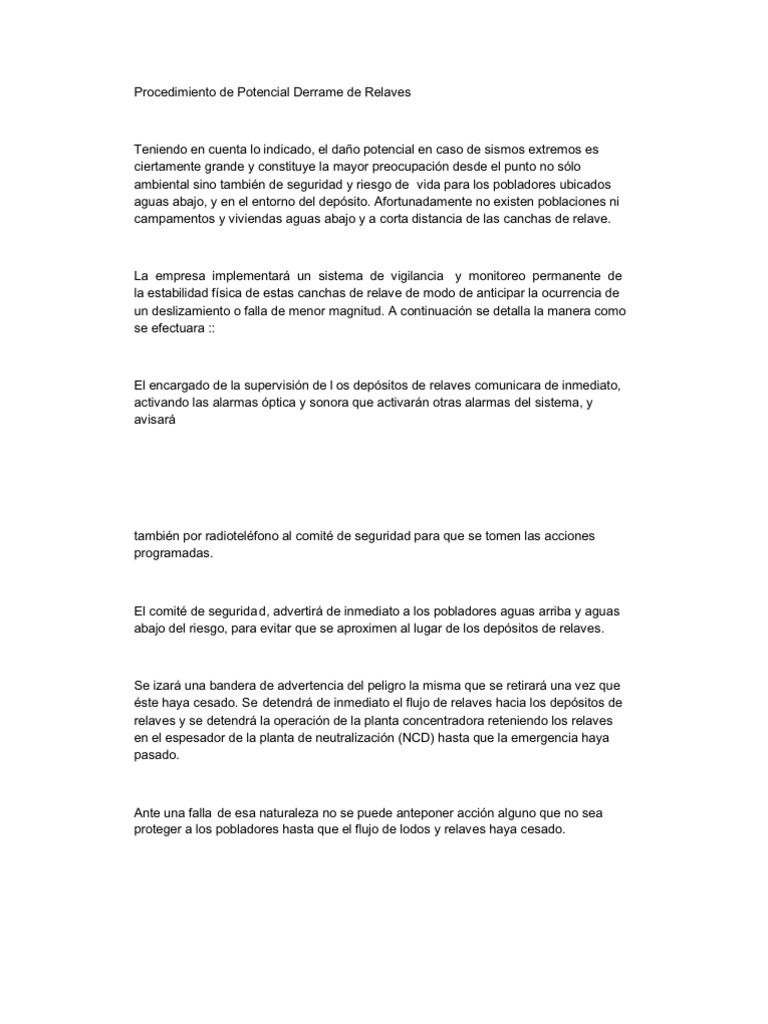 Procedimiento de Potencial Derrame de Relaves