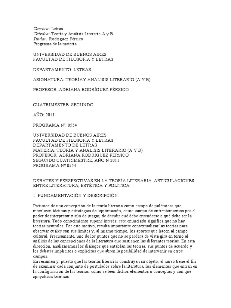 Cátedra: Teoría y Análisis Literario A y B