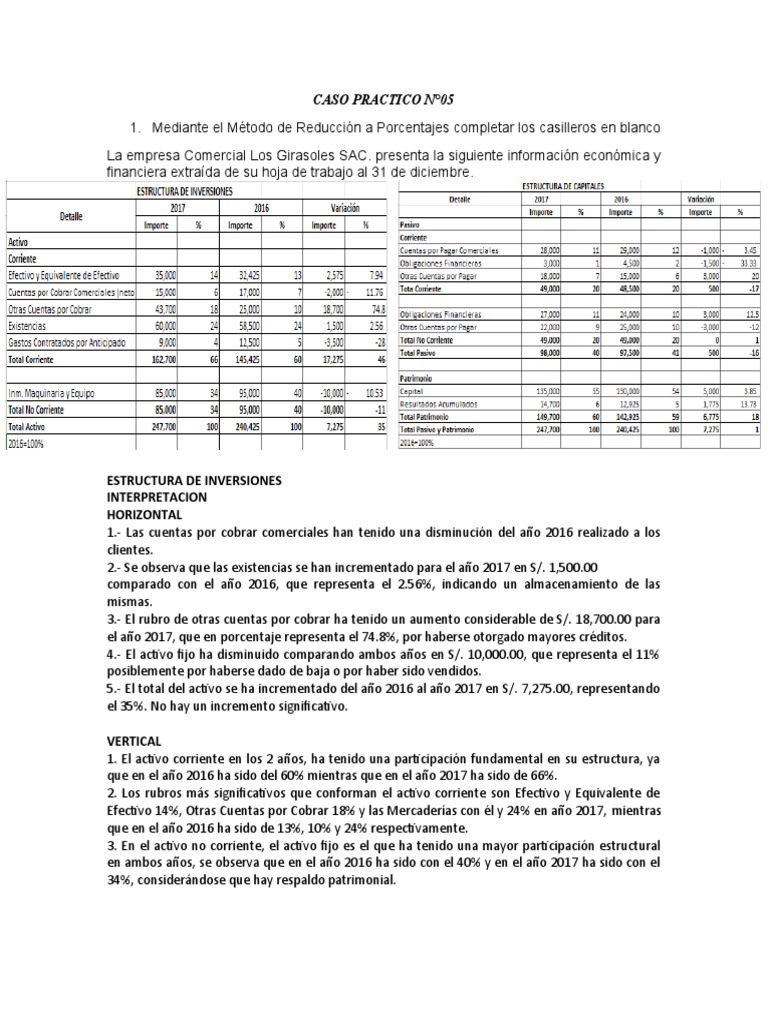 La empresa Comercial Los Girasoles SAC. presenta la siguiente información económica y