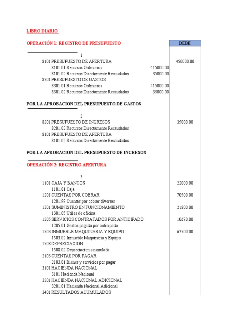 OPERACIÓN 1: REGISTRO DE PRESUPUESTO DEBE