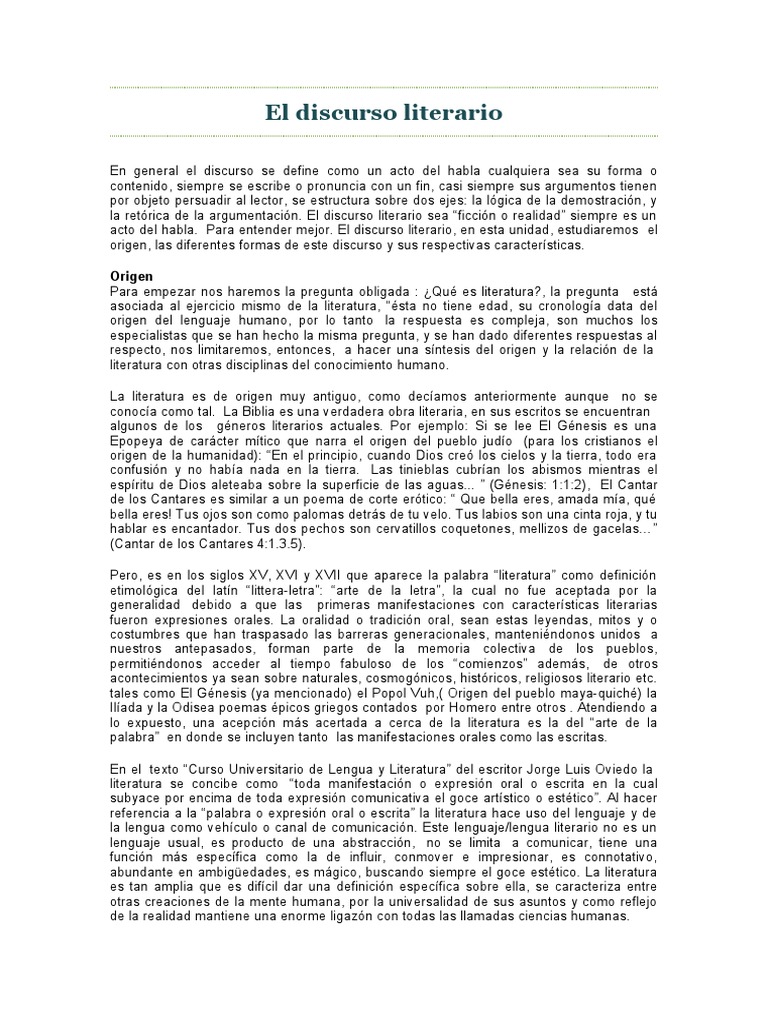 En el texto “Curso Universitario de Lengua y Literatura” del escritor Jorge Luis Oviedo la