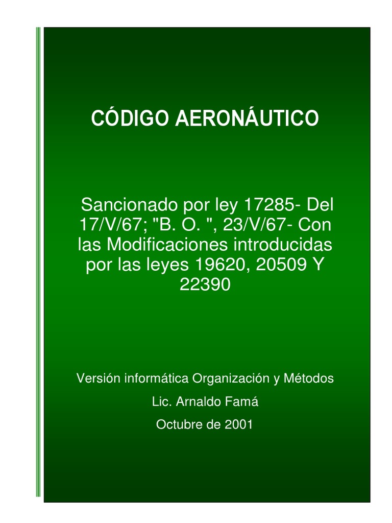 Conc.: Ley 14307, art. 1 y 2; proyecto ley aeronáutica civil 1958, arts. 1 y 2; ley 17094, art. 3.
